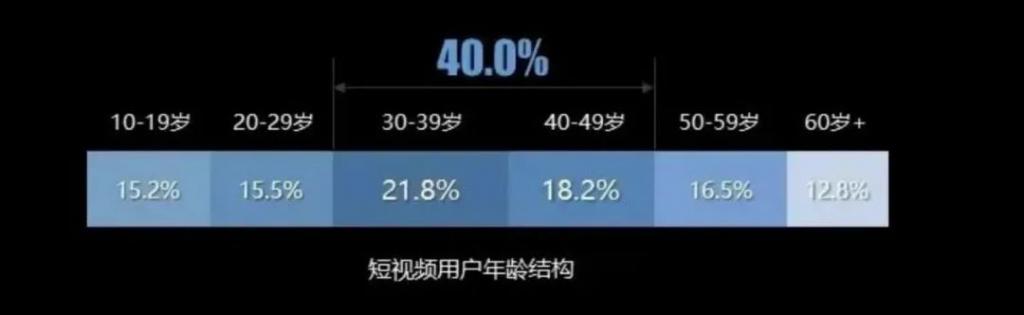 中老年人的增长,在短视频尤为明显。中国广视索福瑞媒介研究(CSM)于 2023 年 9-10 月开展了第六次短视频用户年度调查,从调查结果看,短视频在各年龄段用户中均衡渗透。其中占比最高的是 30-39 岁,为 21.8%,40-49 岁和 50-59 岁的年龄段用户占比加起来为 34.7%,20-29 岁的年龄段用户占比仅为 15.5%。