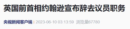 当地时间 9 日,英国前首相约翰逊宣布辞去议员职务,并立即生效。