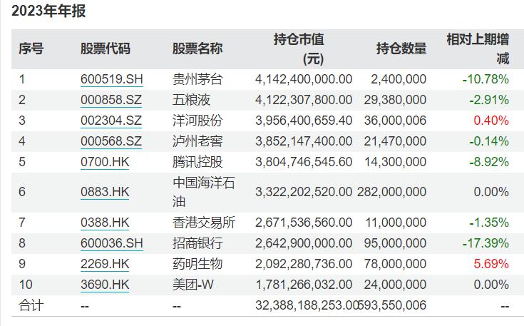 减持招商银行、腾讯控股、贵州茅台