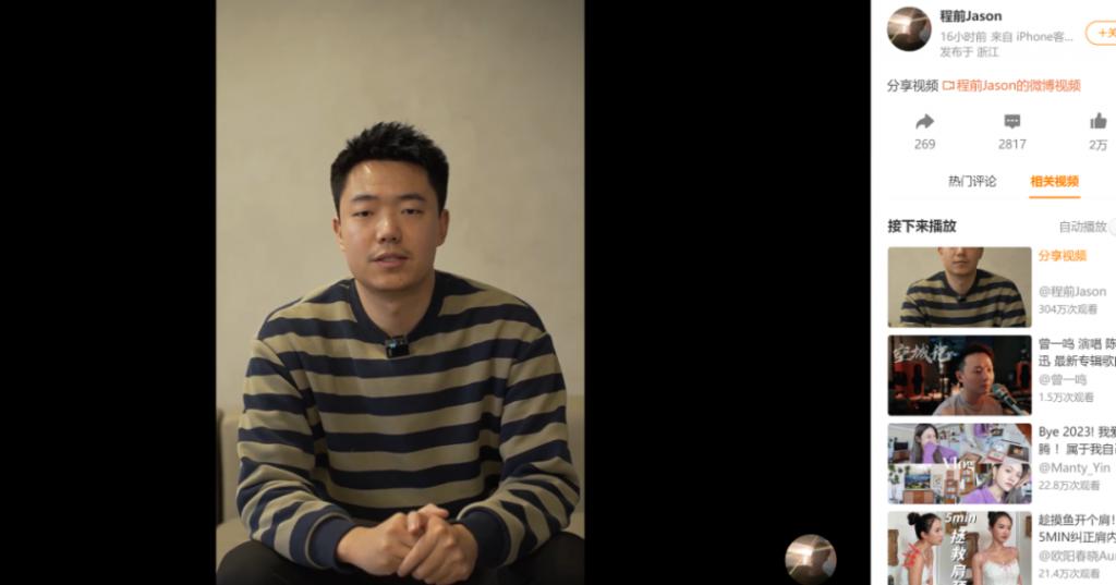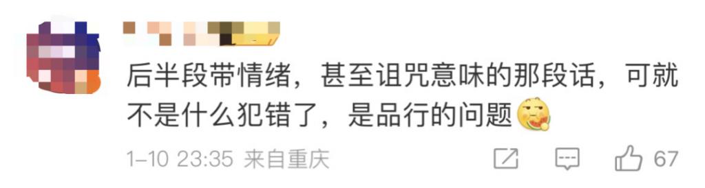 1 月 10 日晚间,程前朋友圈主理人程前在微博发布道歉视频称,自己在 " 风马牛年中秀 " 的表现不可原谅,错误低级。他还特别强调," 要向周鸿祎诚恳地说声抱歉,这绝不是我的本意 "。
