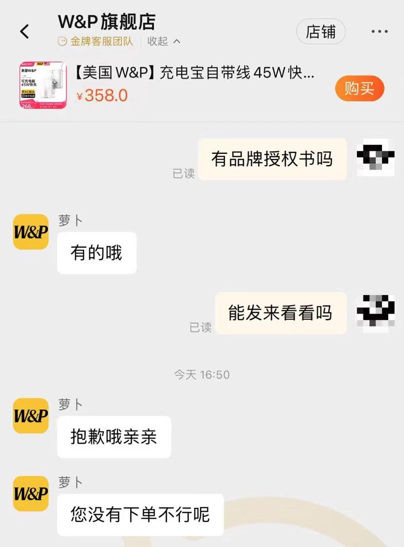 不过,当记者要求查看其品牌授权书时,对方则以没有下单为由拒绝出示授权书。