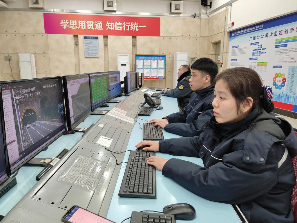 来自湖南永州的广韶高速监控员潘明丽说,自己连续参与春运志愿服务四年,打算春节后再回家和家人团聚。" 每次听见旅客说一声谢谢,就有成就感和幸福感。"
