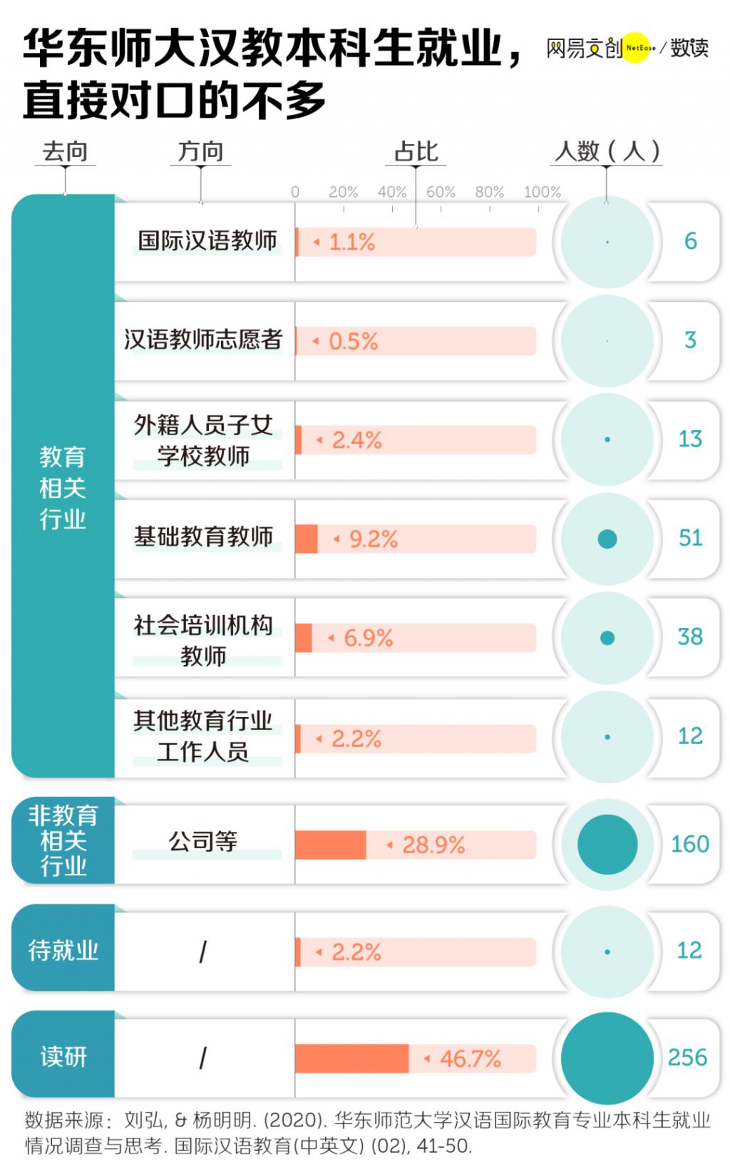 一项针对华东师范大学 2012-2019 届共八届汉语国际教育本科毕业生的调查发现,尽管华东师范大学的汉语国际教育专业已经位列全国第三,就业不对口情况依然严重 [ 7 ] [ 8 ] 。