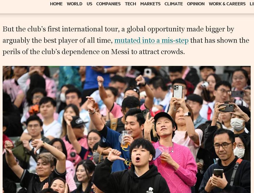 而从英国《金融时报》一篇关于此事的最新报道来看,梅西香港的这次风波,还令一些美国人,尤其是关心美国足球运动发展的人感到紧张。因为他们同样对去年 7 月来美国踢球的梅西寄予厚望,希望他能给不温不火的美国足球带来深远的改变。但梅西和引进他的迈阿密国际队如今在香港经历的这场 " 公关噩梦 " 却在提醒这些美国人,不能将这种希望都押注在梅西一个人身上。