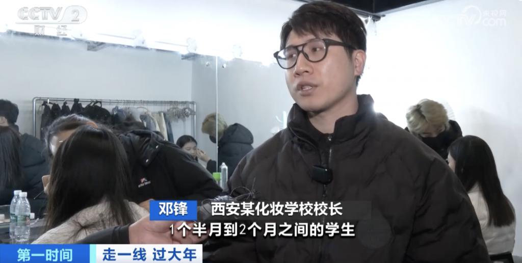 西安某化妆学校校长 邓锋:在校学习 1 个半月到 2 个月之间的学生就可以胜任。有一些要求比较高的,我们会安排学习 3 个半月到 4 个月的毕业班学生。