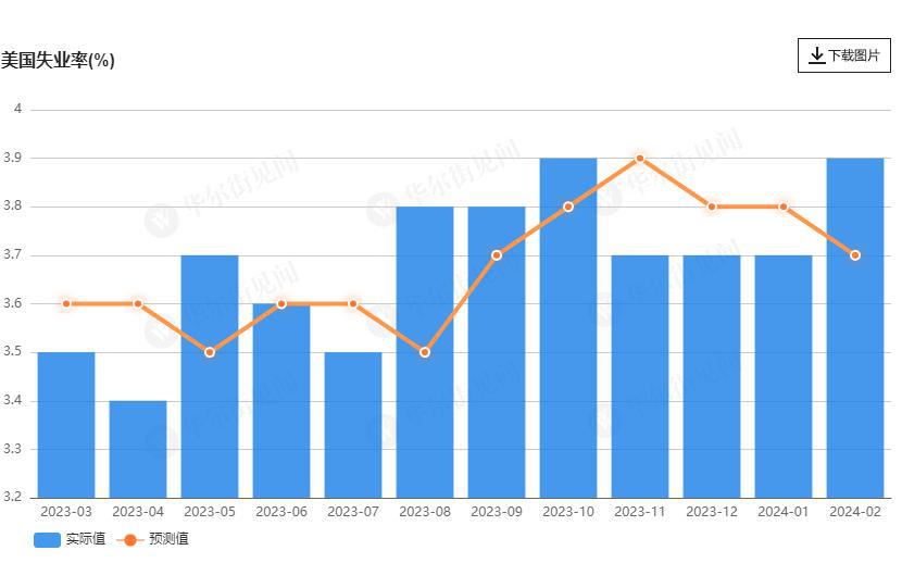 美国 2 月非农失业率意外上升至 3.9%,创 2022 年 1 月以来新高,高于市场预期的 3.7%,1 月前值为 3.7%。