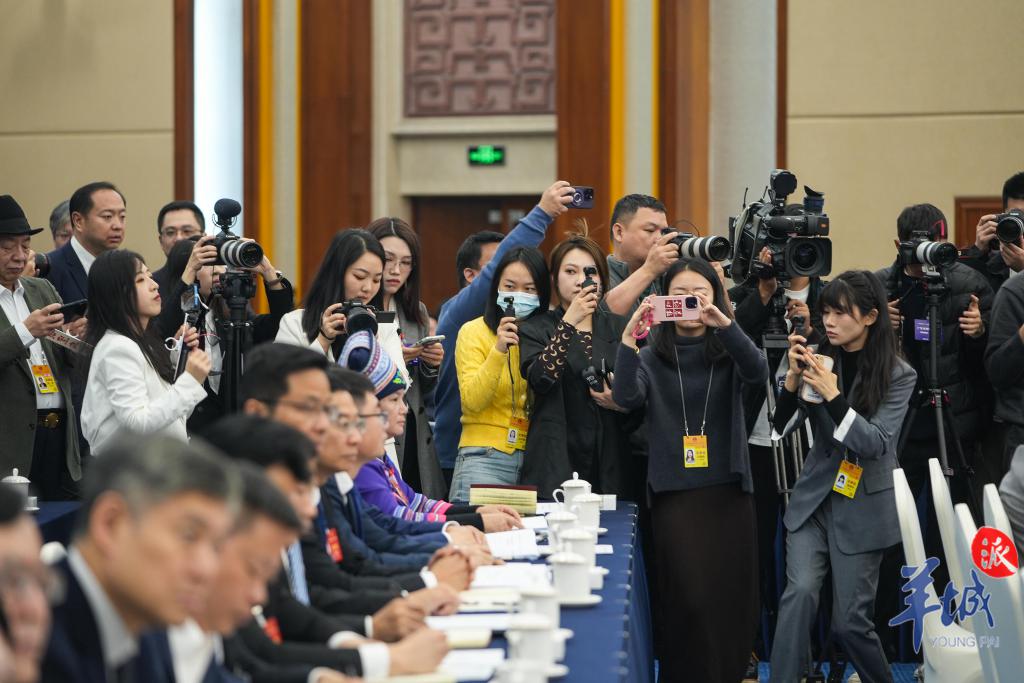 中外记者抛出一个接一个的问题,广东代表团代表一个接一个从容应答,现场干货满满、气氛热烈。