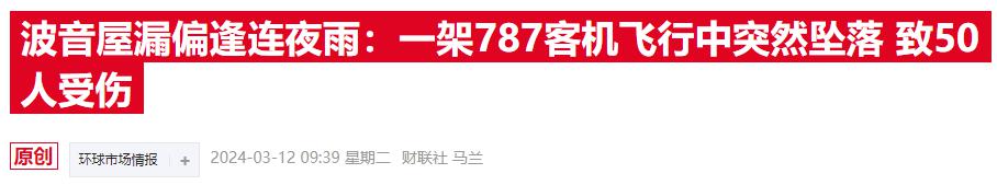 先前,波音的大客户、全球最大飞机租赁公司 AerCap 的 CEO Aengus Kelly 曾提到,他一向支持波音公司及其管理层,但 " 波音现在必须 100% 专注于质量和安全指标。在这一方面,财务指标对于公司的未来来说完全是次要的。"