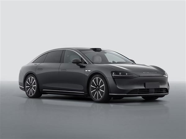 新车新车长宽高分别为 5160/1987/1486mm,轴距为 3050mm,侧面车门面板与前后翼子板上没有采用过多的线条设计,搭配隐藏式门把手以及封闭式轮圈,稳重大气,而车顶的激光雷达预示着它在高阶智驾方面有着不俗的表现。