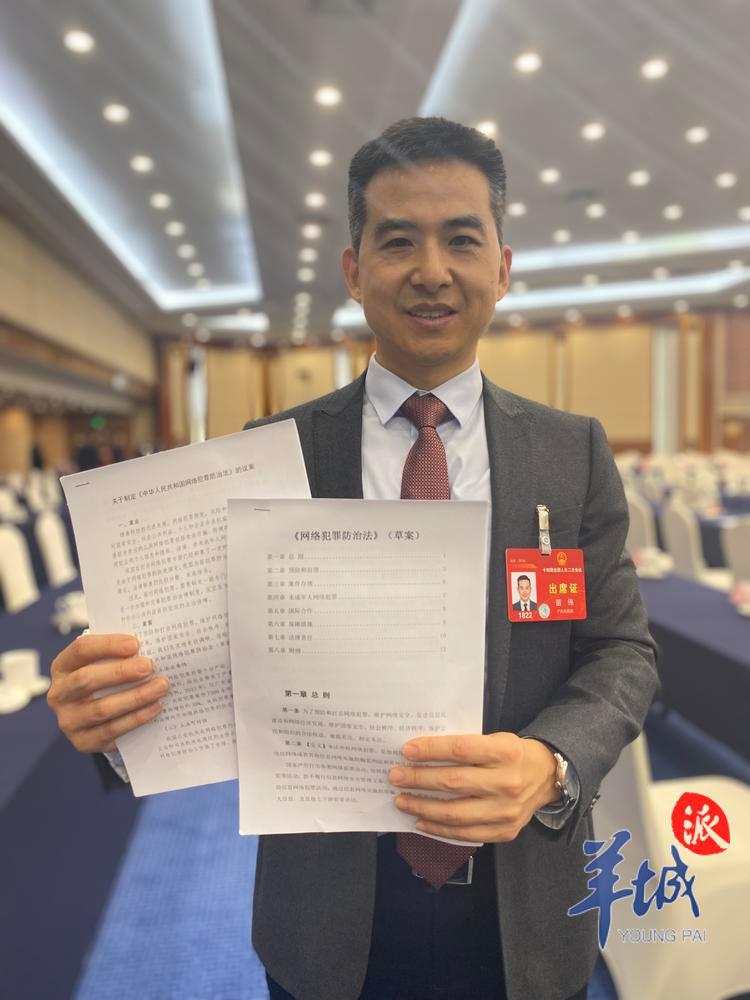 " 我今年带来了关于制定网络犯罪防治法的议案,我还带来了一份附件,是自己撰写的‘法律草案’文本…… "3 月 4 日,全国人代会广东代表团安排代表讨论和提出议案、建议,苗伟在现场发言,积极介绍议案情况,得到了多位代表的点赞支持。