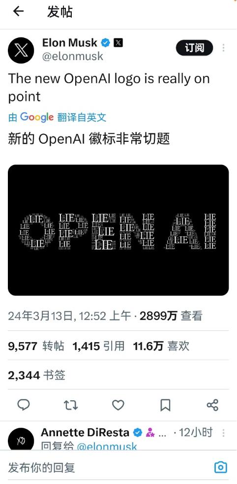 随后马斯克在自己的微博上强调,OpenAI 就是一个谎言。