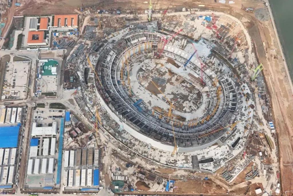 据承建综合体育场的中建八局华南公司介绍,项目自去年 8 月开工建设以来,14 天完成内外环道路及支路施工,3 个月完成 1019 根灌注桩施工,提前 20 天完成首块底板浇筑,提前 20 天完成主体结构封顶,创造出新的 " 南沙速度 "。