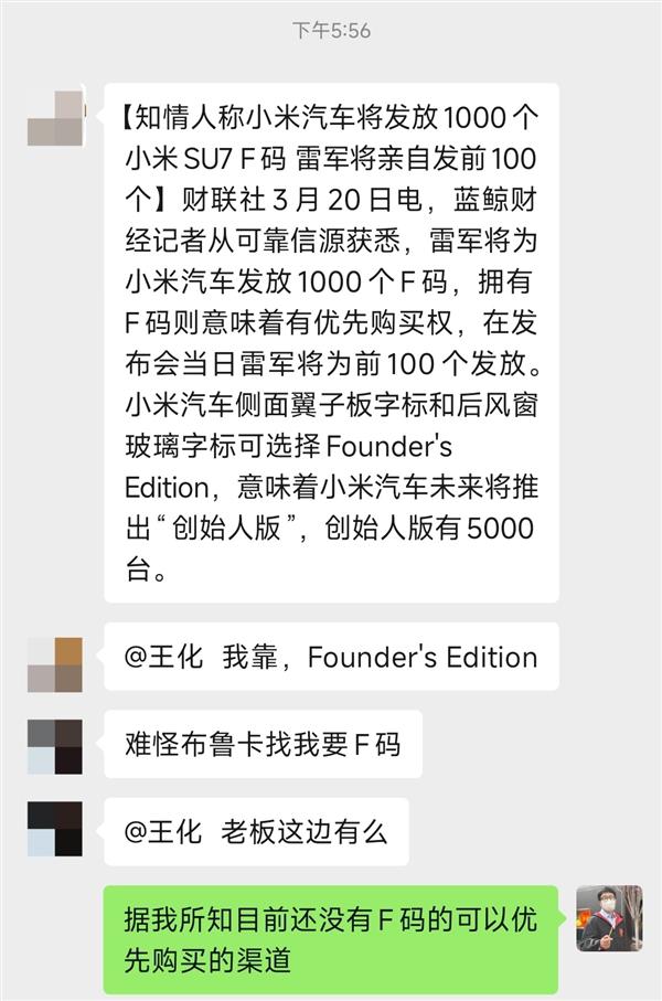 然而,今天下午,小米集团王化作出回应称,小米 SU7 目前并没有 "F 码 " 或类似的优先购买渠道;截至目前,官方只开放了登记品鉴。