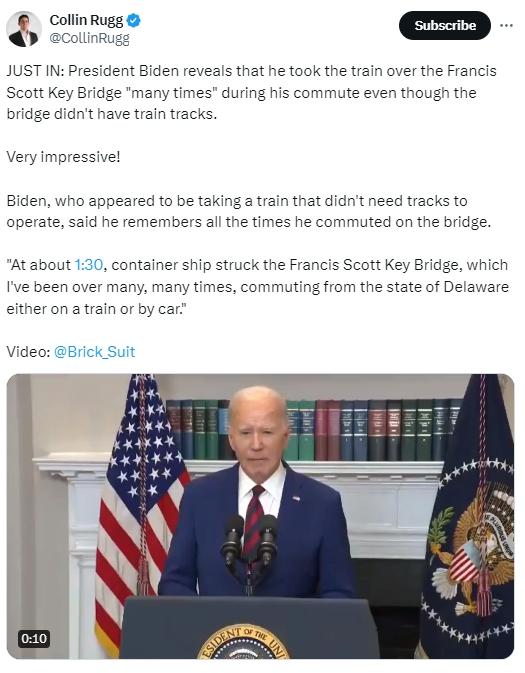 总统乔 · 拜登表示,自己多次经过这座桥通勤。白宫一位高级官员早些时候说:" 我们对这场可怕事件失踪人员的家属表示慰问。"