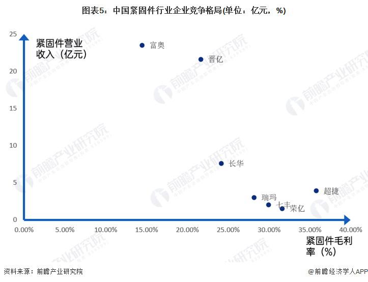 本文核心数据:中国紧固件行业上市企业紧固件业务毛利率、营业收入等