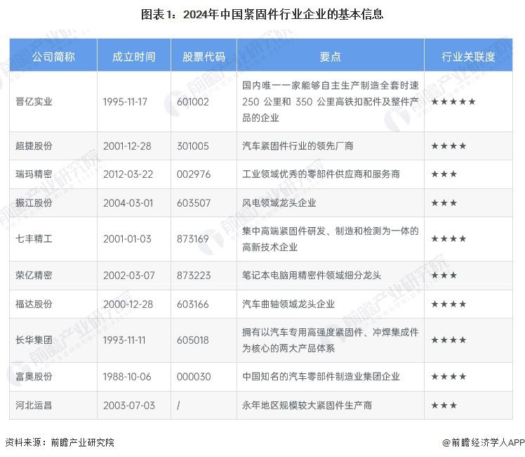 紧固件是应用最广泛的机械基础件,被誉为 " 工业之米 ",广泛应用于汽车、能源、电子、电器、机械等行业。我国紧固件行业企业大部分成立时间较长,按照注册资本和进入市场的时机可做粗略划分,包括早期进入玩家、中晚期进入玩家,通过市场经营积累和是否受资本市场青睐能反映出企业的市场吸引力。