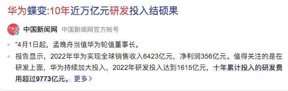 而今年 4 月 1 日当选为华为新任轮值董事长的孟晚舟,更是透露,最近十年华为的研发费,已经超过了 9770 亿!