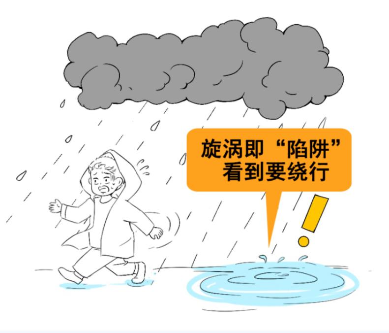 水井、地坑、下水道等被积水覆盖后难以发现,所以如非必要莫冒险涉水,通常有漩涡或向外溢水的地方,很可能井盖已缺,要远离。