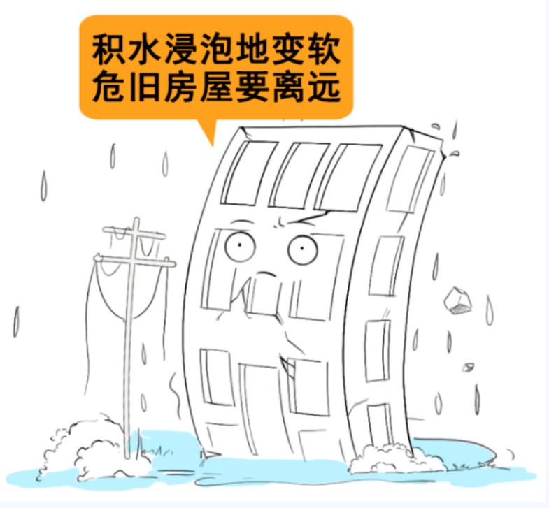 长时间积水会让地质变得松软,一些老房子浸泡后,可能会发生倾斜倒塌,要远离这些建筑。