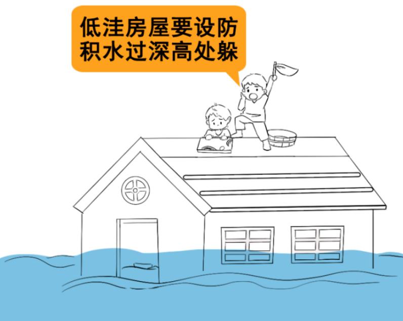 住在地势低洼的房屋可利用沙袋、挡水板等阻挡积水漫入。如果家中积水过深时,要迅速撤离,及时向屋顶、高层等处转移,找到被困地的制高点等待救援。如果被洪水围困急需逃离,寻找门板、洗衣盆、衣柜等作为漂浮物。
