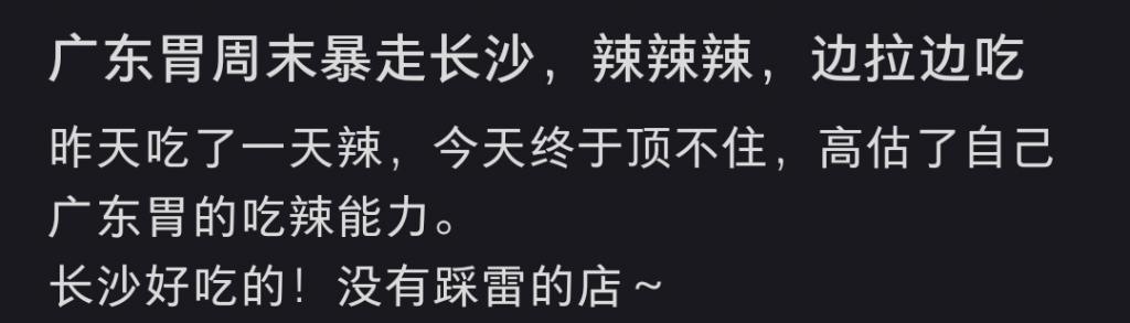 除了被粤语包围的五一商圈、橘子洲、湖南博物院,大家还挖掘了不少外地游客的 " 小众景点 "。