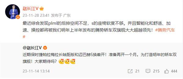赵长江曾表示,全新智能豪华旗舰轿车在空间、智能配置、舒适体验以及加速操控等方面大大领先保时捷 Panamera、奔驰 S 级,且麋鹿测试成绩可能接近 90km/h,最小转弯直径可实现 10 米以内。