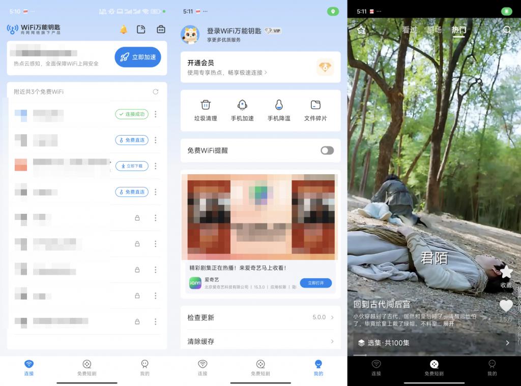 WiFi 万能钥匙就是广告大杂烩,大广告套小广告,多图层套娃全凑齐了。不知道的还以为进入了个什么病毒软件。