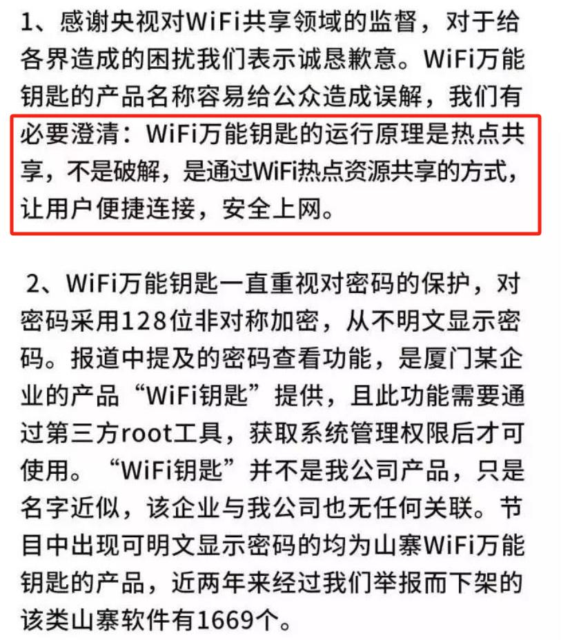 舆论一片哗然,WiFi 万能钥匙马上出来喊冤,说央视报道的这个是山寨软件。