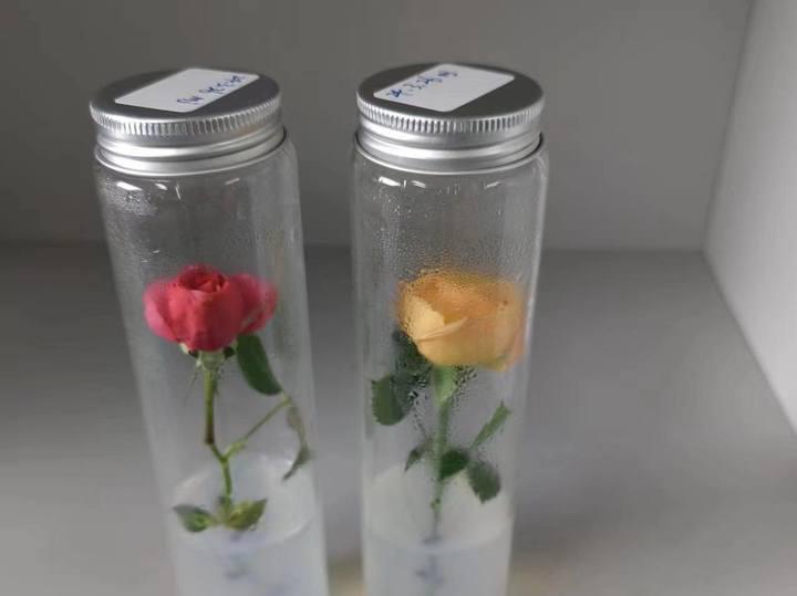 后续售卖的其他鲜花,如微型月季、康乃馨等,使用的是约外径 2 厘米,管长 12 厘米的试管内进行特殊培养,消费者收到的也将是试管鲜花,它们的体积更微小,但在试管内,花期可达一到两个月。