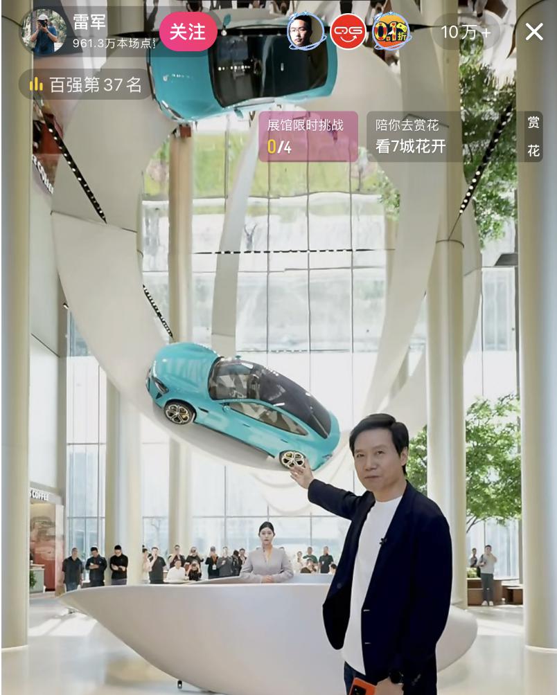 直播开始时,雷军开小米 SU7 出场,开播仅 1 分钟观看人数超过 10 万,直播 20 分钟,点赞数 4400 万。