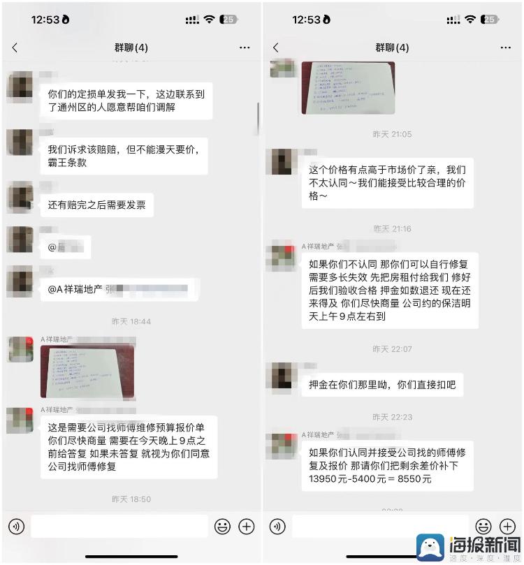 刘先生承认,房子里确实有损坏,他找北京的无痕修补公司,所需费用大概是 2300 块钱," 但是他们不同意我们这个方案,全程一直在变价,最开始说要赔 3 万多元,后来又说 4 万多元,现在又改了,又说要一万三千多元。"