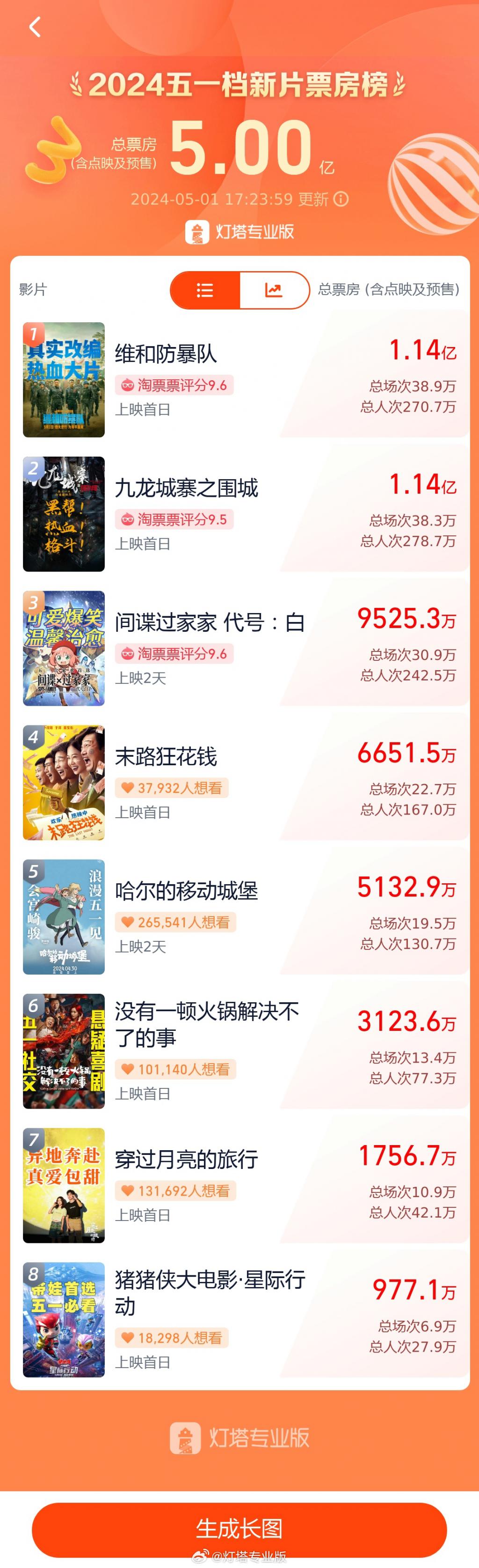 2024五一档新片票房破5亿!首日票房超去年