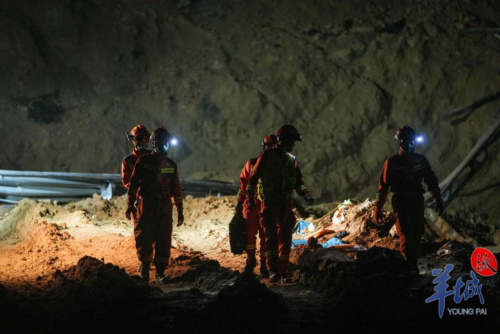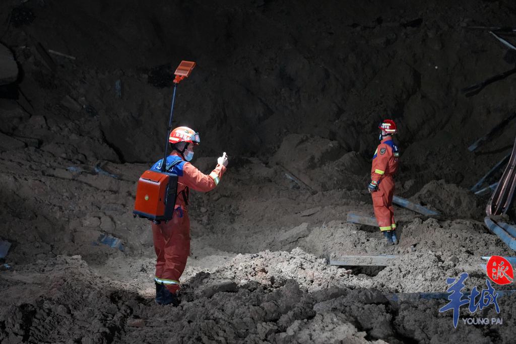5 月 1 日 22 时,记者看到,现场灯火通明,救援人员依然全力以赴进行搜救,他们拿着生命探测仪一寸一寸地进行搜索;将掉进事故现场、然后被吊机吊起的车辆安全地运出,并放置在货车上。紧张的清淤工作也在同步进行,以确保搜救行动全方位展开。