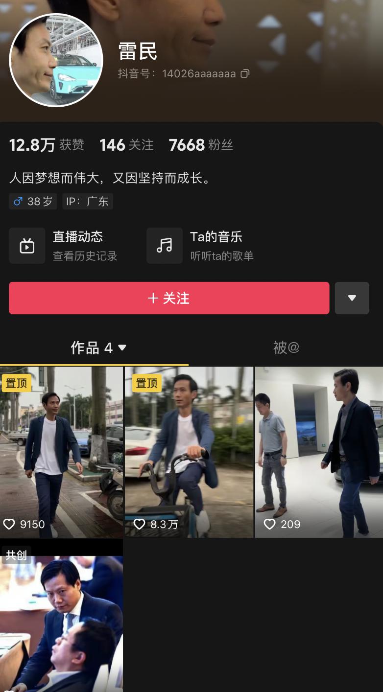 从该帐号发布的多条视频来看,无一例外均是在模仿雷军,就连背景音乐也用上了 "Are you ok"。流量最高一条视频点赞超过 8 万,账号粉丝 7000 多。