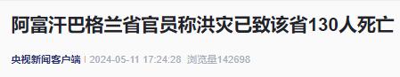 据央视新闻客户端报道,当地时间 5 月 11 日,阿富汗巴格兰省省长发言人马吉德发布消息说,截至目前,近期该省发生的洪水灾害已导致 130 人死亡,超 100 人受伤。