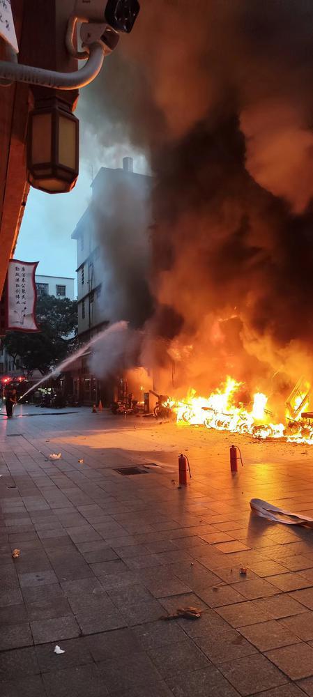5 月 10 日,一段火灾视频在广州街坊群中疯转,引发广泛关注。视频中,广州市白云区三元里街抗英大街的一沿街商铺冒出浓烟,大火蔓延至周边多间房屋,街道路面停放的多辆电动车也被吞噬。随后,消防车和消防人员迅速赶至现场,将大火扑灭。