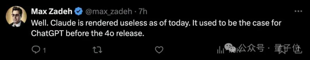 " 恭喜恭喜!从今以后 Claude 就会变得平庸无奇没啥用了,毕竟 GPT-4o 发布之前(超级对齐两位领导人离职前)的 ChatGPT 就是这样。"