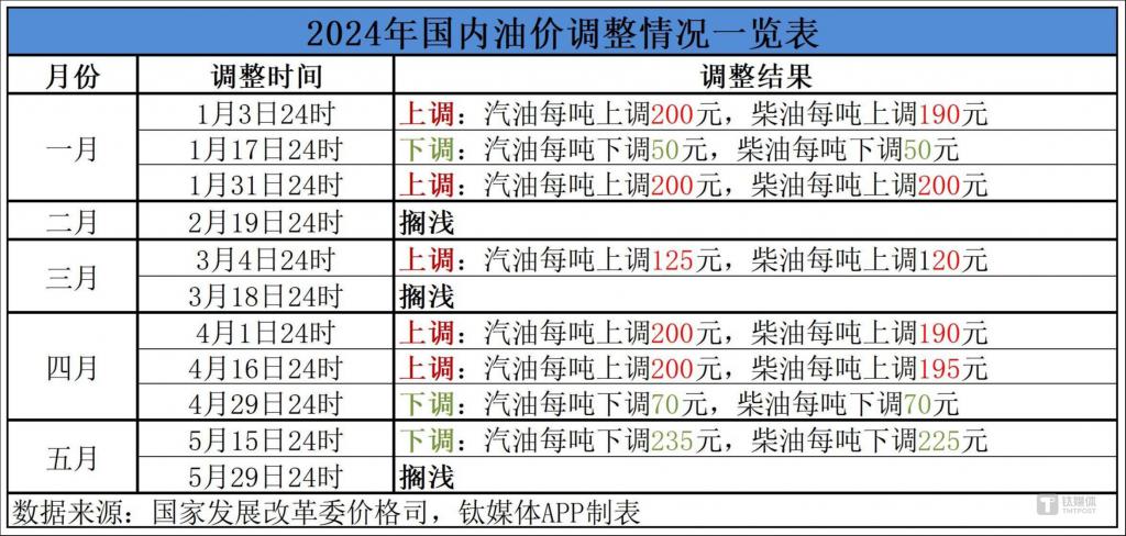 2024 年 5 月 29 日,国家发展改革委价格司发布公告,本轮成品油价调价周期内,国际油价窄幅震荡,5 月 29 日的前 10 个工作日平均价格与 5 月 15 日前 10 个工作日平均价格相比,调价金额每吨不足 50 元,根据《石油价格管理办法》第七条规定,本次汽、柴油价格不作调整,未调金额纳入下次调价时累加或冲抵。