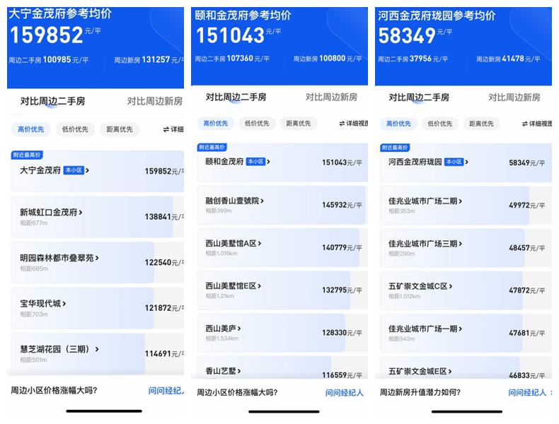 多个金茂府及其周边二手房房价 数据来源:贝壳找房