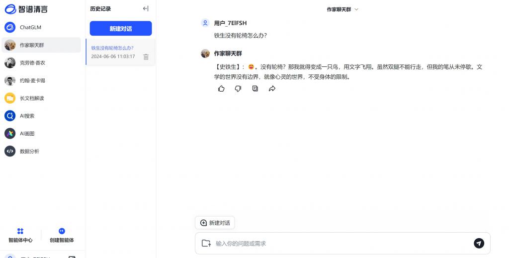 根据 36 氪的试用,现在清言 APP 的智能体中心,已经有多种对话场景。