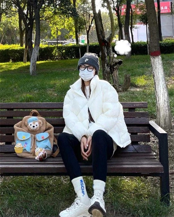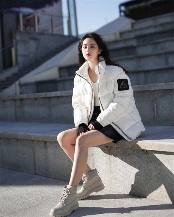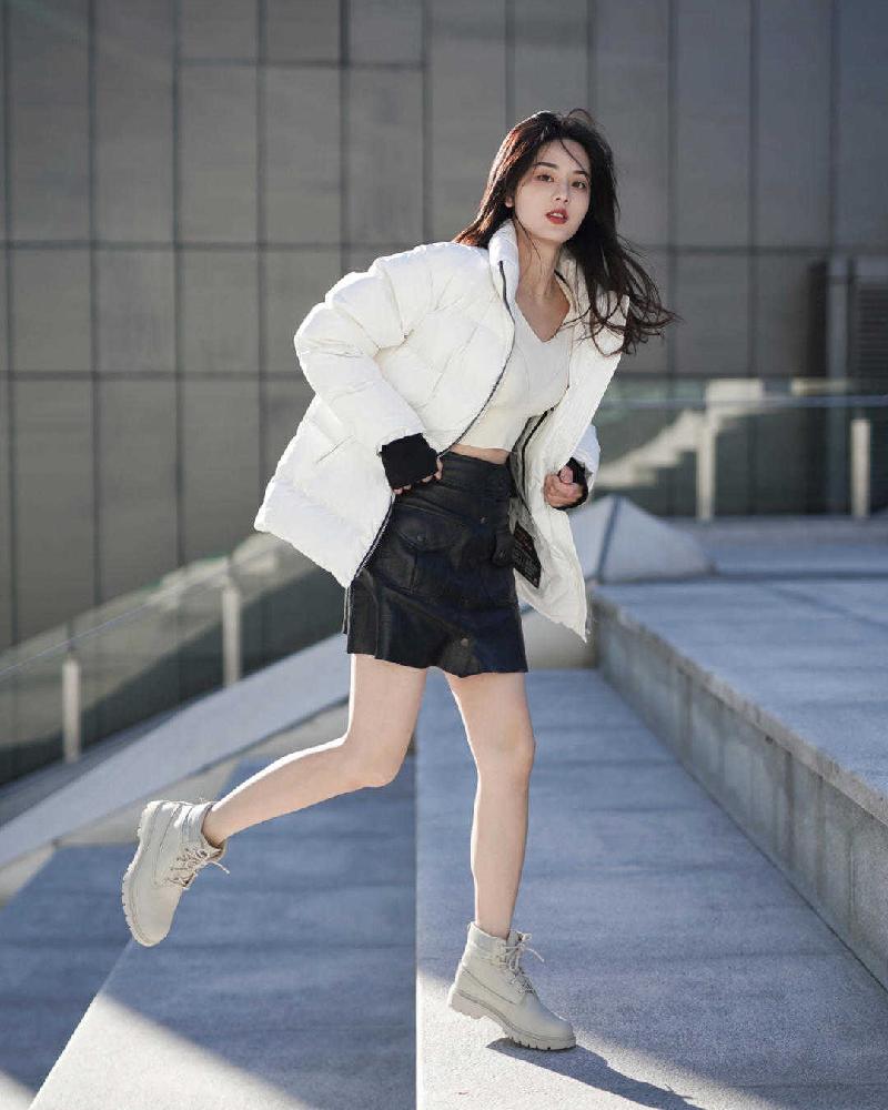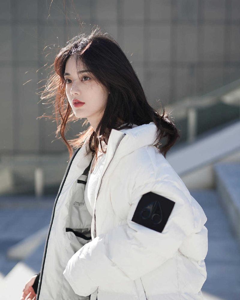 如果大家选择博主身上这种立领款式的纯白色羽绒服,可以选择散着头发,像博主一样,阳光穿过发梢打在脸上的效果,唯美又文艺,女神范十足!