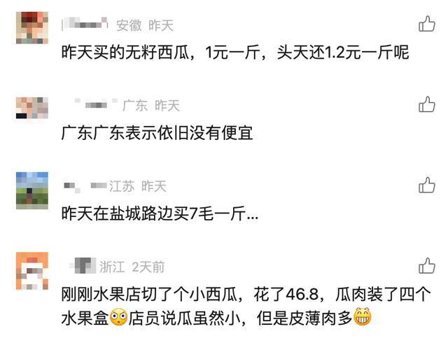 各地网友也纷纷留言晒出自己购买的西瓜价格。