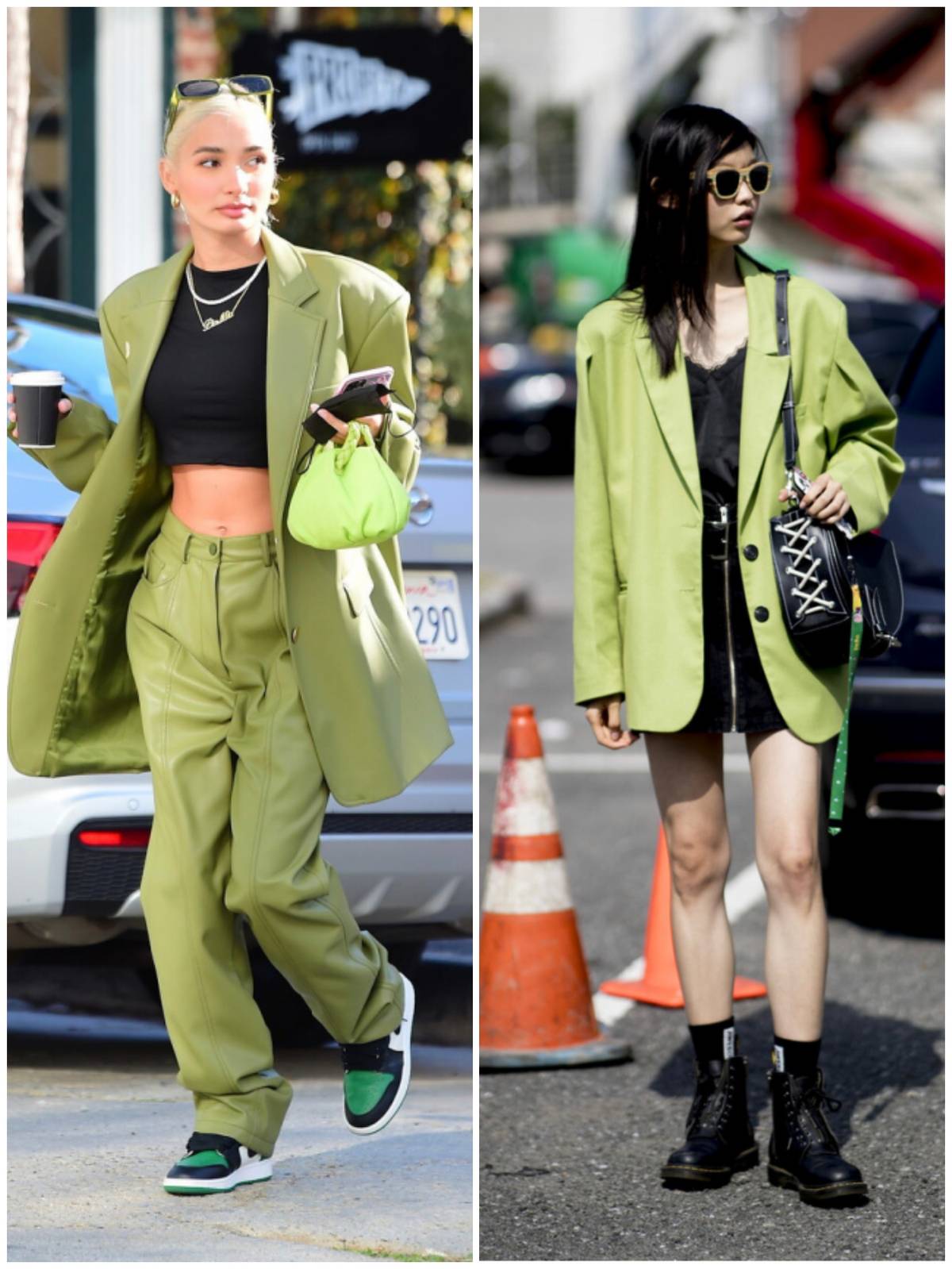 比如牛油果绿西装就是如此。西装本身会给人比较干练严肃的气场,但是和牛油果绿相结合之后,就会变得非常时髦了,很有时尚达人的feel。