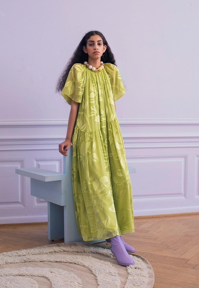 牛油果色建议选择浅色系的款式,宽松版型的裙子能够让气质变得更加清新舒适一些,也可以在上面加入一些浅色系的印花。