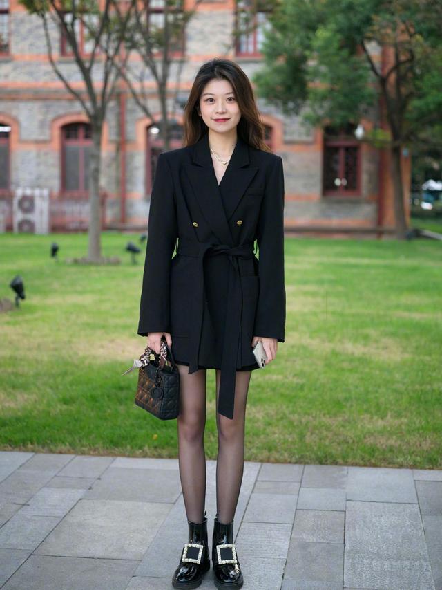 其实最关键的一点就是不要选择太厚重的丝袜进行搭配,这样的质地会显得僵硬不自然,pick一款轻薄的丝袜进行搭配就会显得高级又耐看,还能穿出几许性感的效果。