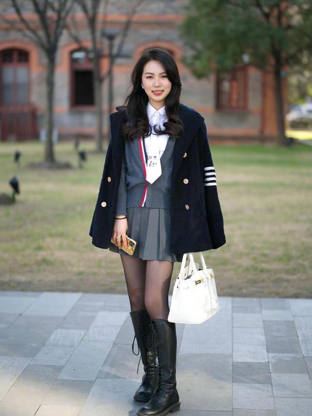 穿出来的效果会更俏皮,如果觉得搭配得层次感不够,也可以通过配饰进行点缀,比如剑桥包、乐福鞋、针织开衫这些能展现青春气质的标配。