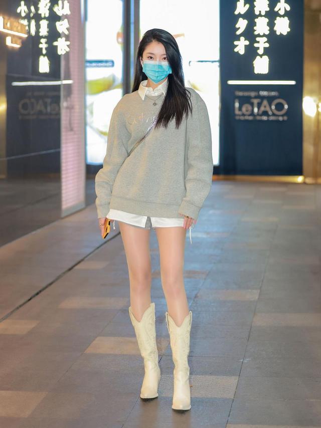 这样的款式比起厚款的黑丝袜要显得更自然吸睛,不会穿出浓浓的秋裤既视感。