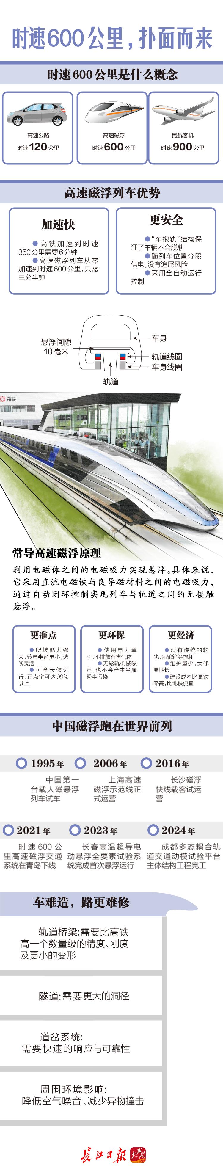 磁浮列车时速达 600 公里,是当今世界最先进的轨道交通技术。有人将它比喻为 " 零高度飞行器 ",再贴切不过了。参与此项研究的中铁第四勘察设计院集团有限公司(以下简称铁四院)副总工程师文望青说,可以理解成 " 贴地飞行 "。