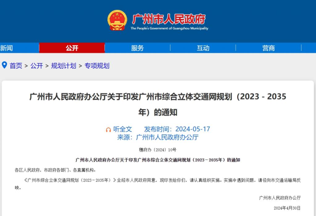 广州市综合立体交通网主骨架设施布局表(图源:广州市人民政府官网)