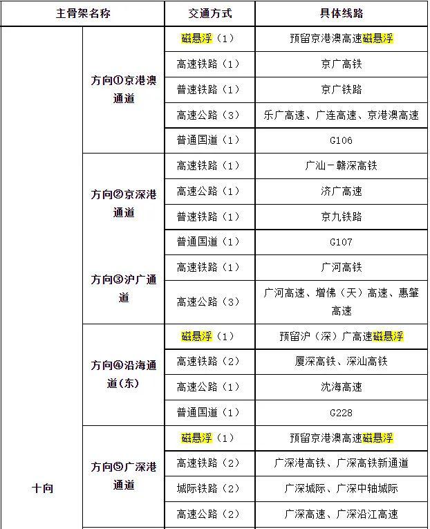 这也是首次明确提出了两大磁悬浮高速通道的构想。从线路的走向上看,京港澳高速磁悬浮对应的是 " 三横六纵两联 " 中的京港澳通道,沪(深)广高速磁悬浮对应的是国家沿海通道。
